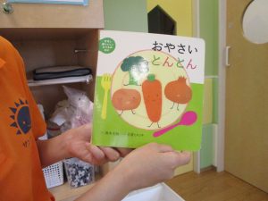 にんじんやたまねぎ、じゃがいもなど、お子様達も馴染みのお野菜がたくさん登場する絵本です♪