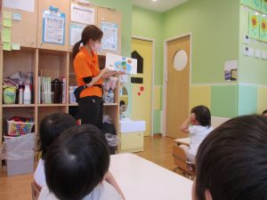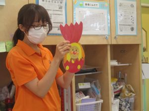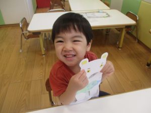 皆に誕生日の歌を歌ってもらったり、先生からお楽しみのペープサートを見せてもらい全員の笑顔弾ける誕生会となりました♪