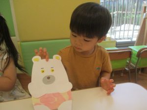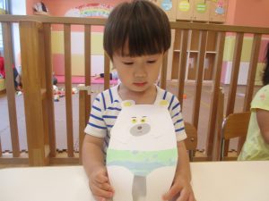 「ぼくのはこれ♡」と前日に自分の作ったしろくまくんのパンツを大切に抱えながら、顔や手を作っていき、個性豊かな可愛いしろくまくんを完成させておりました♪
