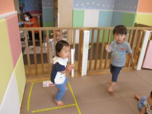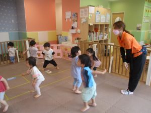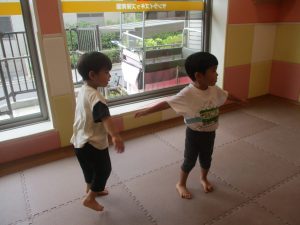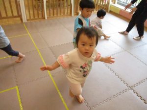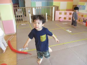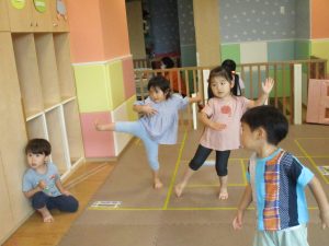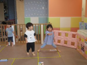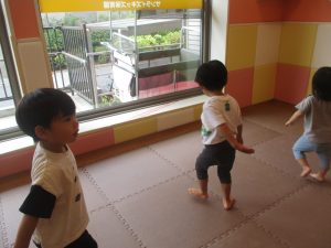 のびのびとお部屋を使って、元気よくリトミックから1週間の始まりです~♪
