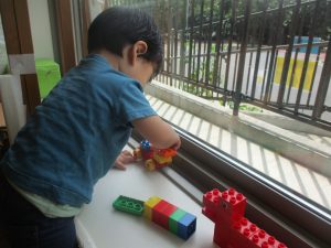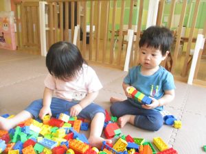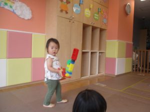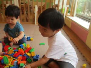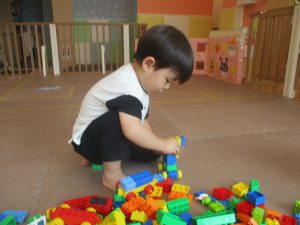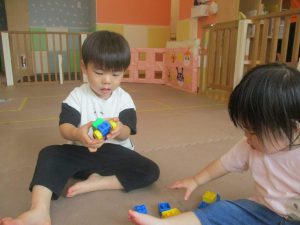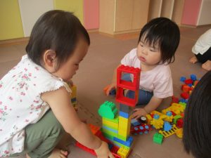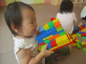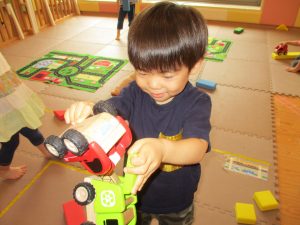 2歳児クラスのお友達は「ショベルカー!」や「ピアノ」を大人も驚くほどの再現度で完成させておりました。そんな姿を見て小さなお友達も真似っこ。