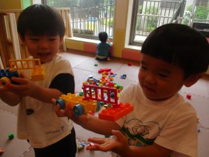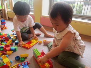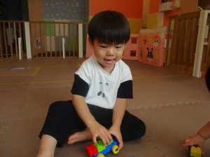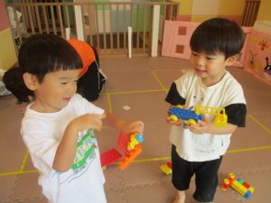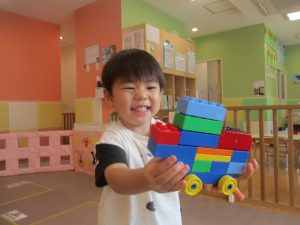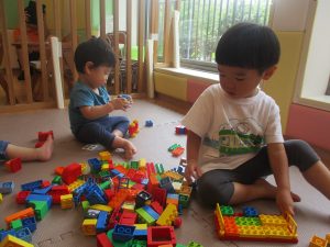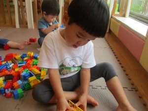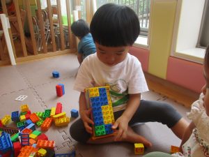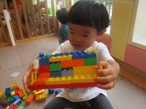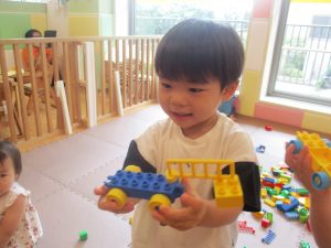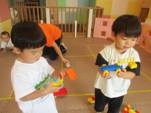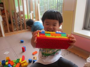 水遊びの合間には、室内にて大好きな「レゴブロック」を使った遊びを行いました。