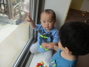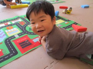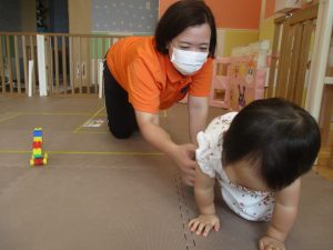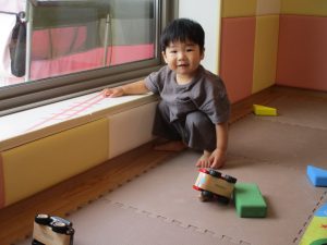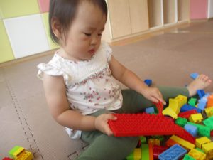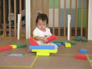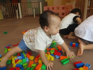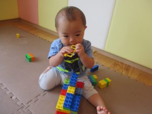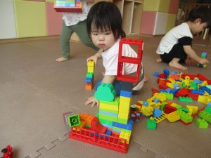 ブロックを一生懸命重ねようとする姿に微笑ましい気持ちになってまいりました。