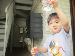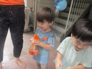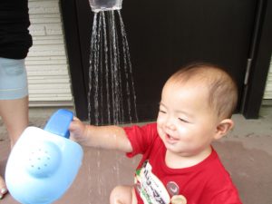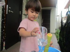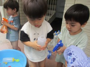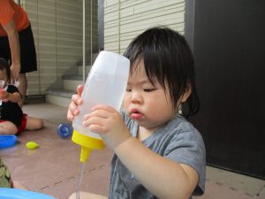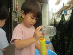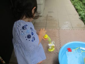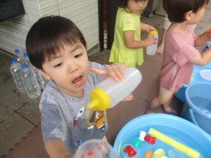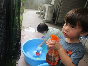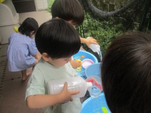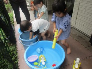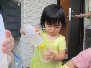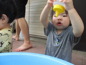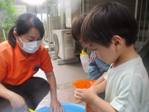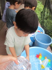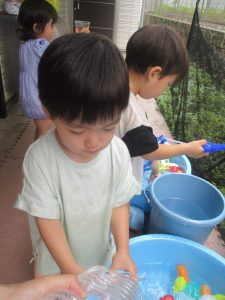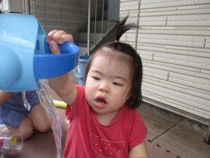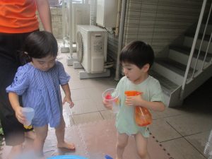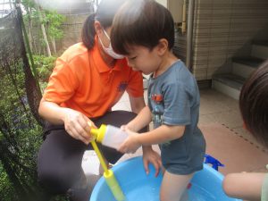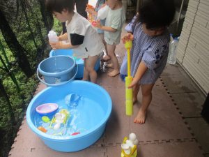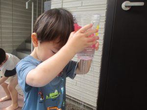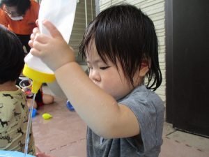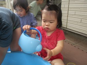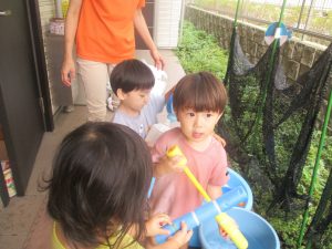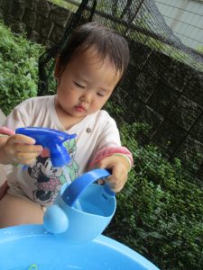 水遊びでは、本日もジョウロやカップのシャワーを存分に楽しみました♪