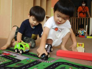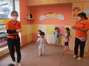 週初めは、お盆休みのお友達も多く少人数でのスタートとなりましたが、少人数ならではののびのびとお部屋を使った活動を行ったり、いつも以上にゆとりのある時間の中で「〇〇がしたいなぁ♪」とみんなで相談をしたりして、少人数の静けさも感じさせない谷津園でございます。