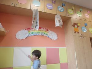 お休みが続くと、お友達に会えない寂しさもあるかと思いますが「〇〇くんにあったよ♪」とお子様たちから偶然街中でお友達に出会ったという嬉しそうな報告も聞こえてまいりました。保育園でも毎朝、みんなの名前を読んだり、お休みのお友達を確認したりしておりますが、そういった朝の会も大切に、全員が揃う日を楽しみに過ごしてまいりたいと思います♪