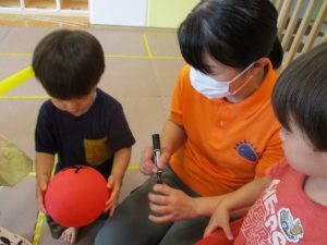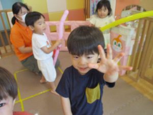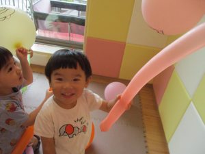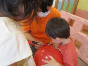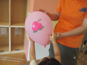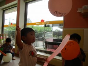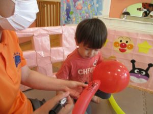 一人ひとりの風船には「アンパンマン!」や「バイキンマン!」とそれぞれの好きなものをリクエストして先生に描いてもらい、嬉しそうなお子様達でした♡