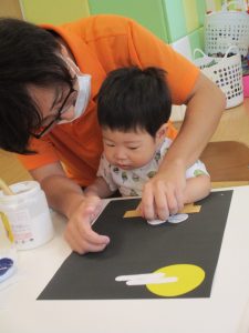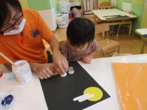室内では十五夜会に向けてお月見製作を楽しんだり、好きな玩具を見つけては夢中になって遊んでおりました。