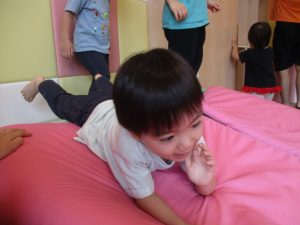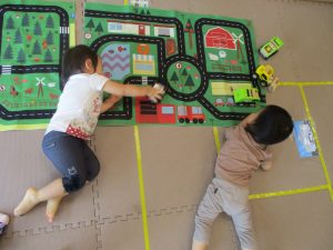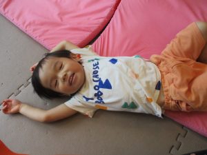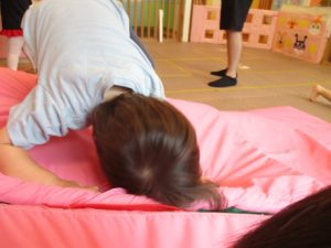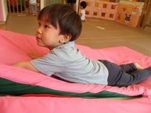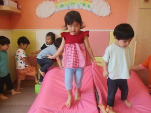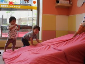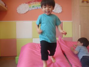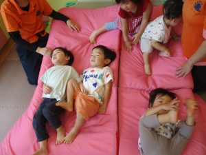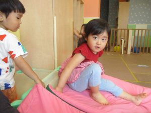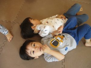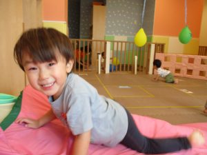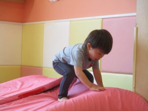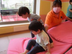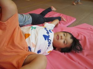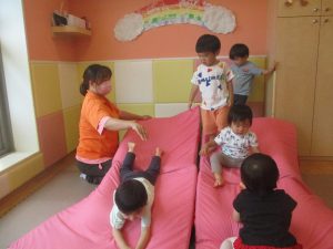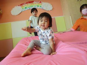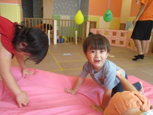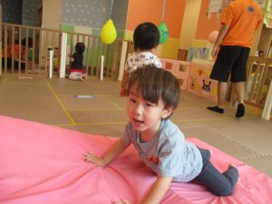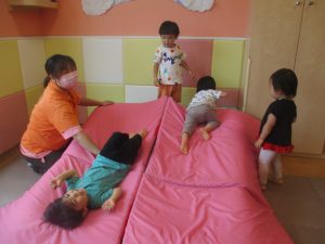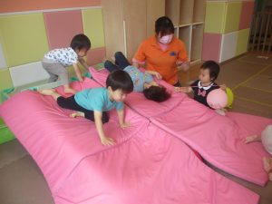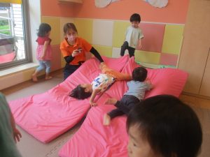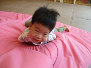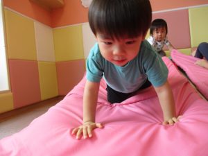 中でもマットのお山はお子様達にとても人気があり、斜面になっている部分をお友達と一緒にくっついて滑ったり、「コロコロコロ~♪」と転がったりして、賑やかに過ごしておりました♪
