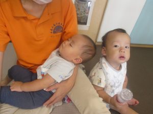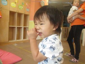 0.1歳児クラスのお友達は室内にて過ごしました。