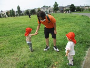 日中は年齢別に分かれて戸外散歩を楽しみました!