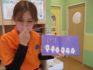 絵本の中に出てくる可愛いおばけちゃんたちの絵を見ながら、歌って楽しめるため、お子様達もとても喜んで見てております。