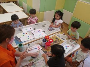 こんにちは。サンライズキッズ谷津園でございます。 週初めは、お盆休みのお友達も多く少人数でのスタート...