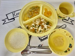 【離乳食(後期)】 エネルギー176kcal たんぱく質5.3g 脂質1.8g 粥 豆腐の煮物 キャ...