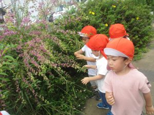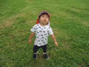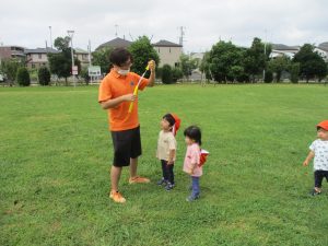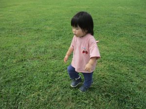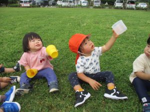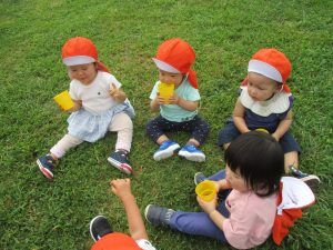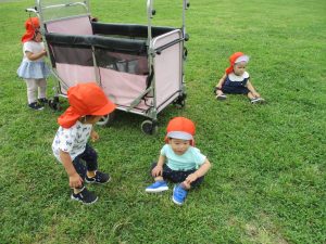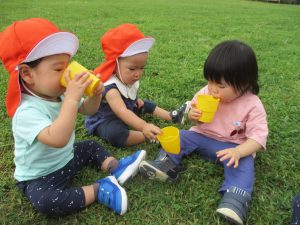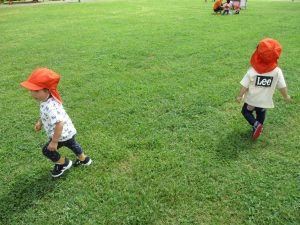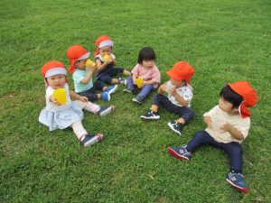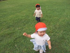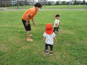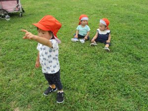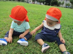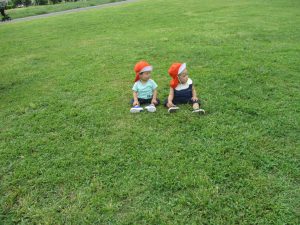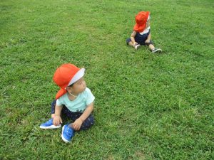広場での追いかけっこを楽しんだり芝生の上に座り芝の感触を味わっておりました。
