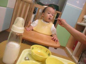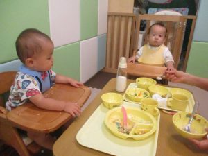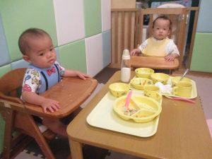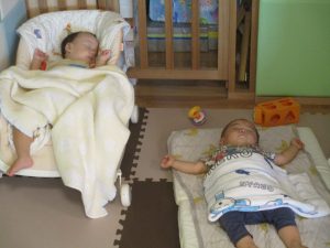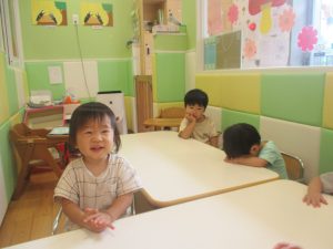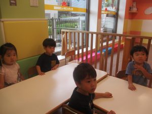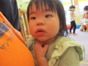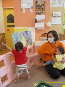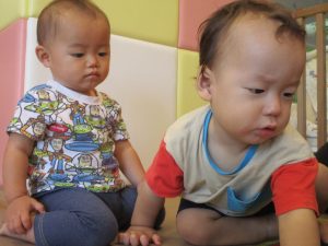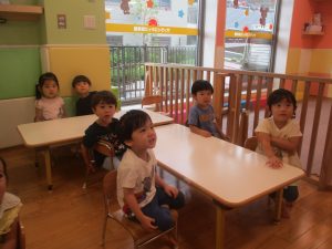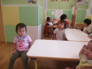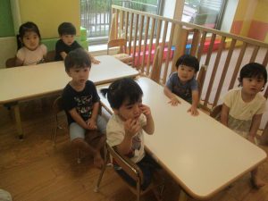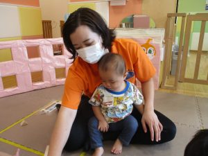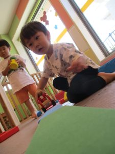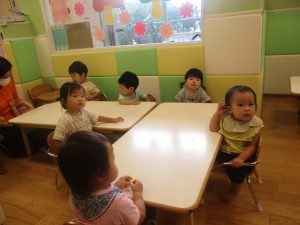 0歳児クラスのお友達は室内にて過ごしました。
