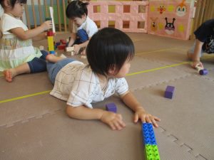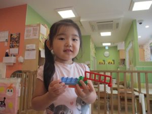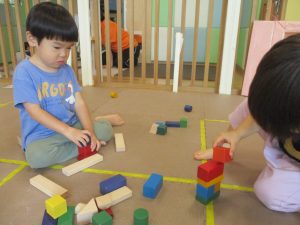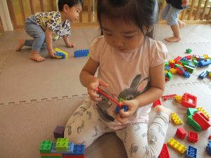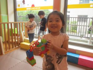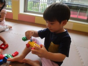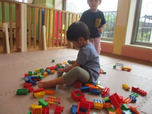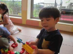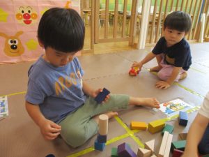 体調を考慮してお水遊びをお休みしていたお友達も、室内で積み木遊びや大好きなレゴブロックを使った遊びをして過ごしておりました。