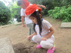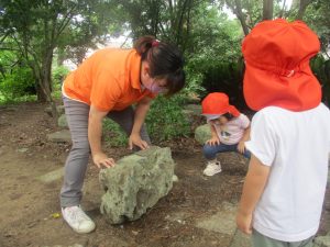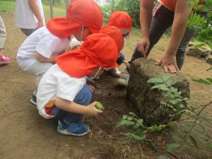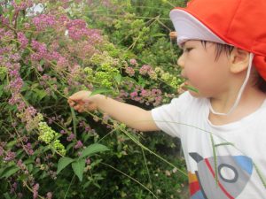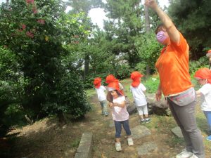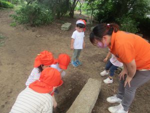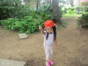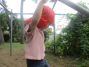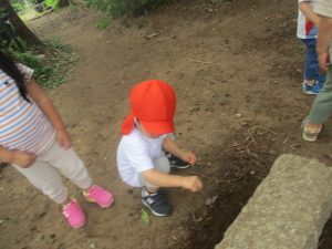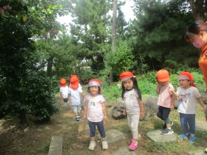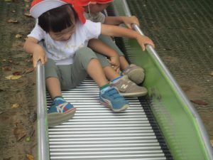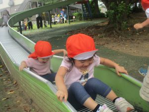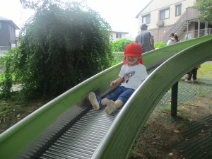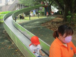 奥にある林を楽しそうに散策したり、大好きなローラー滑り台を使って思い切り体を動かして遊びました。