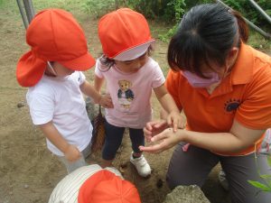 今日は、8、9月合同のお誕生日会もあり、誕生児のお友達を中心にみんなで最後のケーキも手を伸ばして美味しくいただきました…♡