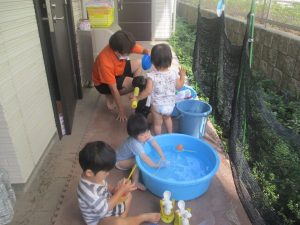 本日は久しぶりに水遊びを行いました。