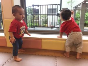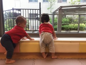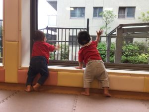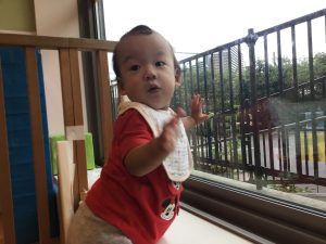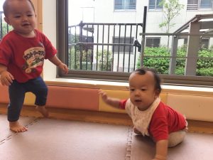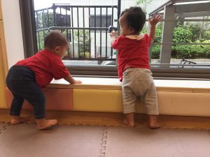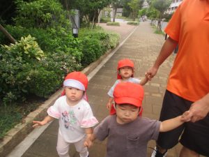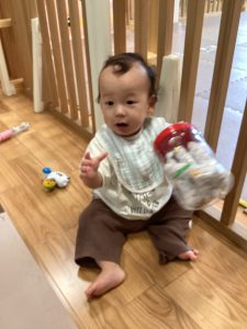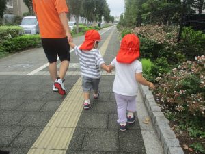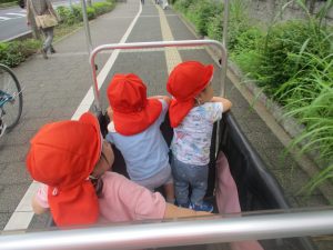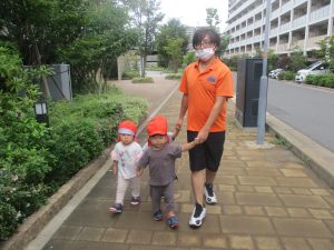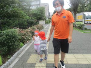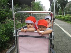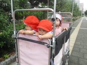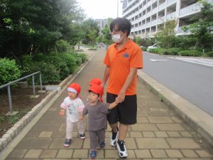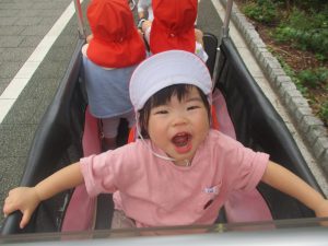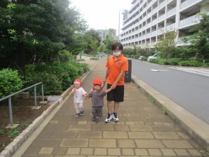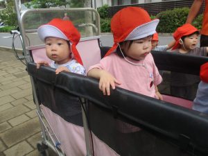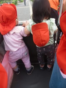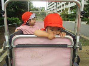 1歳児クラスのお友達も、歩き散歩や立ち乗りバギーを使ってのお散歩になり、入園・進級当初の抱っこや座りバギーでのを思い返すと、一人ひとりがお兄さんお姉さんになったように感じられております♪