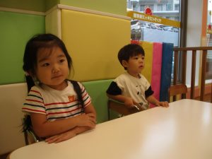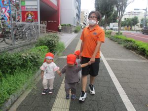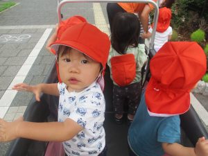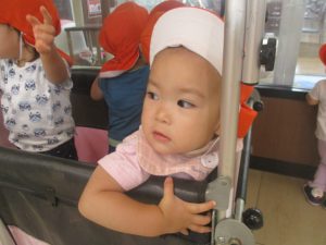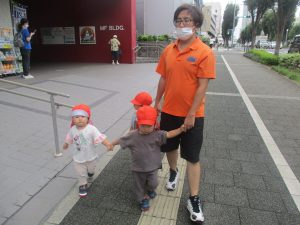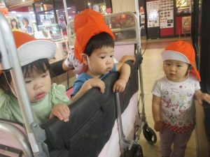 1歳児クラスのお友達は、近隣のモールまでお出かけをしました。