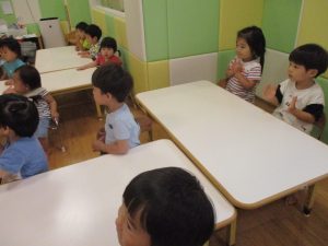 みんなからお誕生日のお歌をプレゼントをしました。「ハッピーバースデイ」のお歌も誕生会の回数を重ねるごとにタイミングよく歌えるようになってまいりました♪