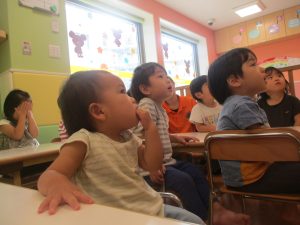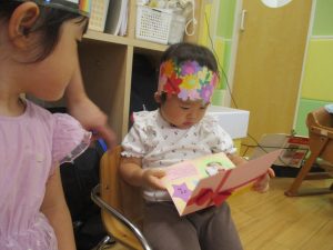 先生たちからもお誕生日カードや仕掛け絵本の読み聞かせのプレゼントもあり、今月の誕生会もみんなの笑顔が溢れるものとなりました。