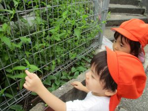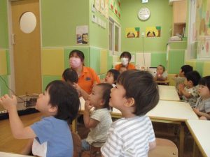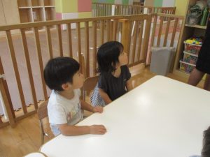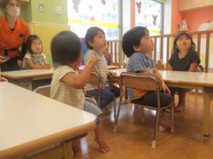 木曜日は、少し涼しいお天気となりクラスごとにお散歩に出かけたり、室内遊びを充実させたりして過ごしておりました。