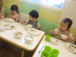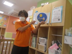 本日は、各クラスごとにお散歩にでかけたり、室内遊びやお月見の製作を行ったりして過ごしておりました。