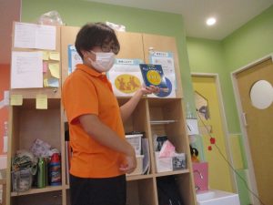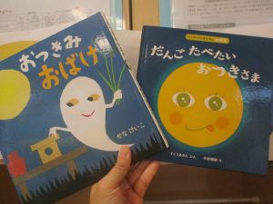 「お月様が綺麗にまあるく見える日に、お月様にお団子をお供えするんだよ」と、2冊のお月見の絵本を通してご紹介いたしました。