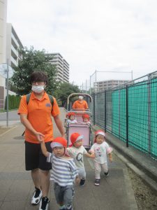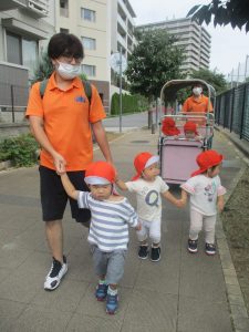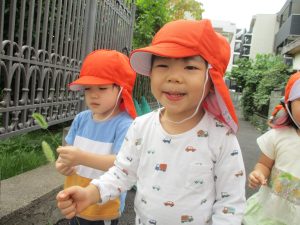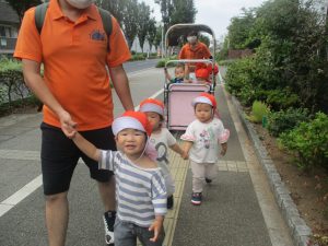 木曜日は、年齢ごとに分かれてお散歩に出かけました。