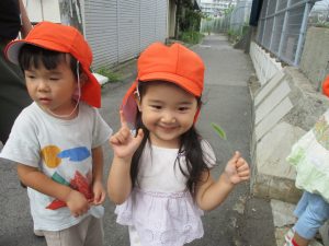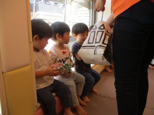 2歳児クラスのお友達は津田沼駅周辺まで電車や秋の自然物探しにでかけ、一人一本ずつの「猫じゃらし(エノコログサ)」をお土産に持って帰りました♡