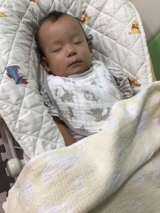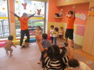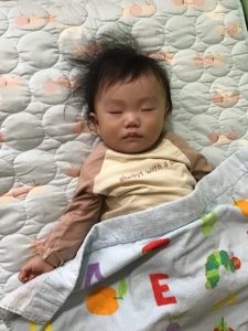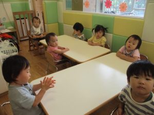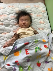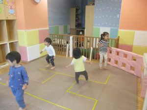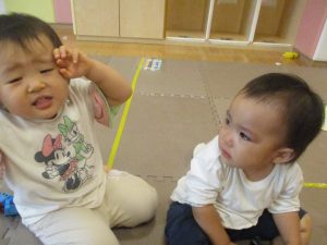 0才児クラスのお友達は、先生と一緒にお昼寝をしたり、広々としたお部屋の中でゆったりとマット遊びをしたりしておりました。