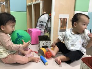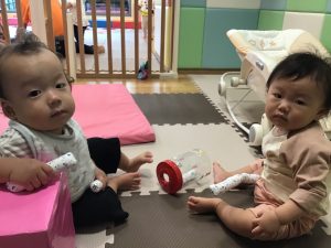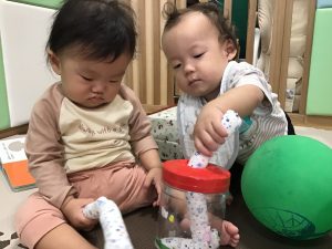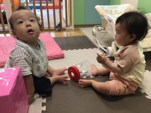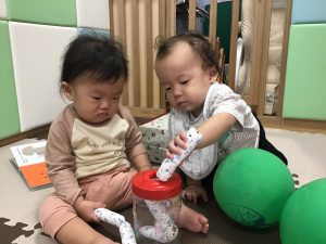 お友達と一緒な玩具に触れる姿も微笑ましい姿でした♪