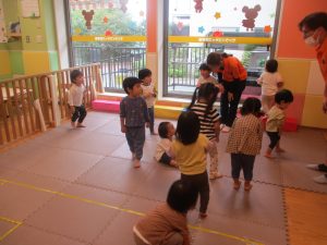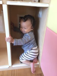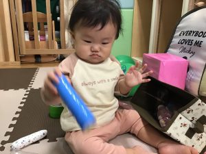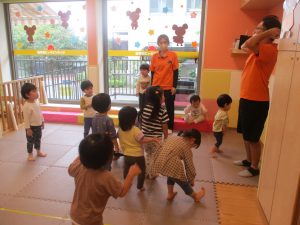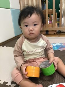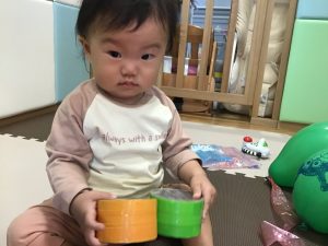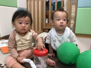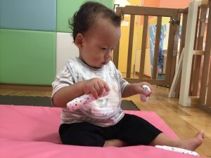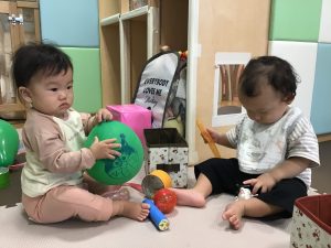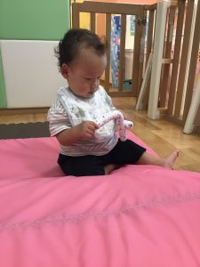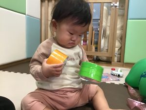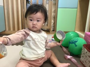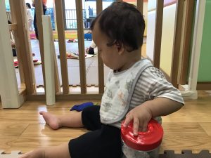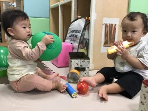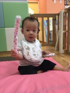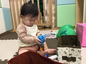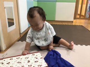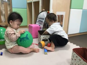 0才児クラスのお友達は先生とゆったりと好きな玩具や遊びを見つけて過ごしておりました。