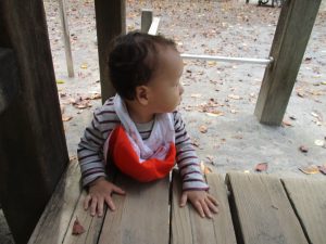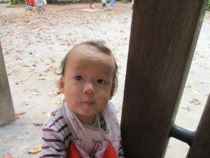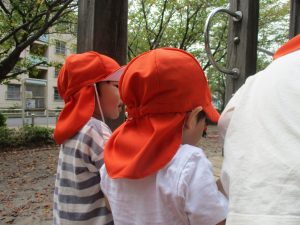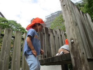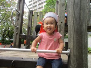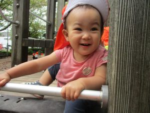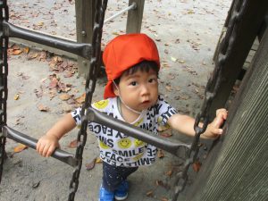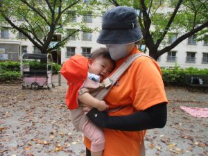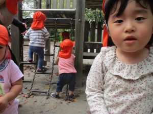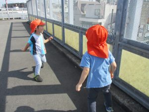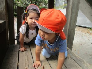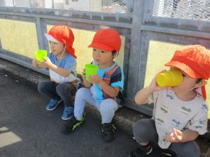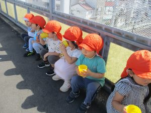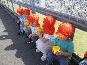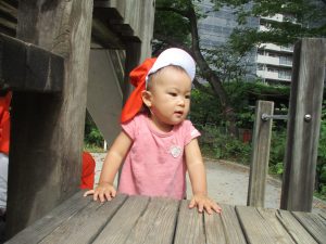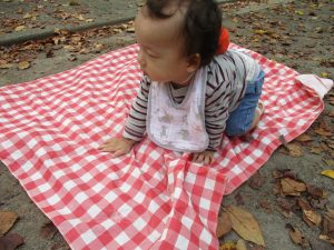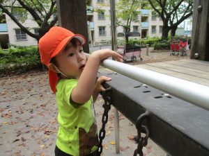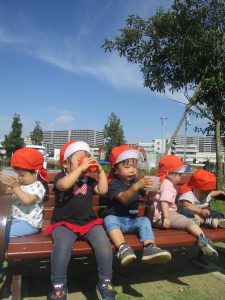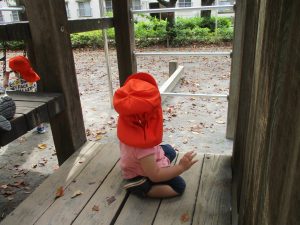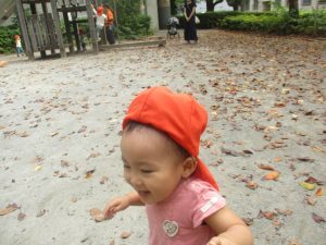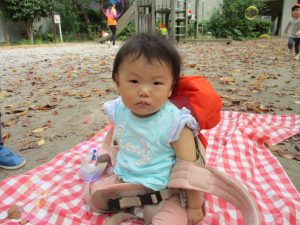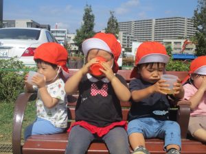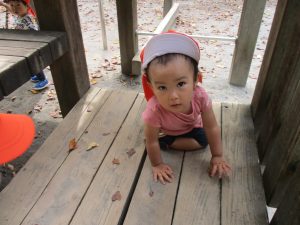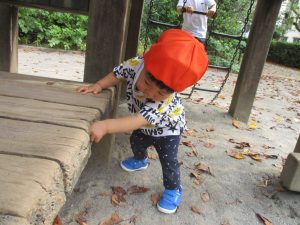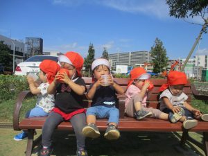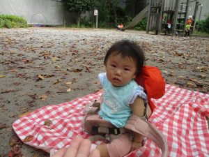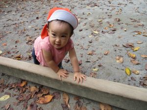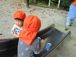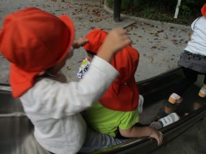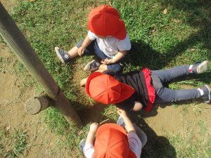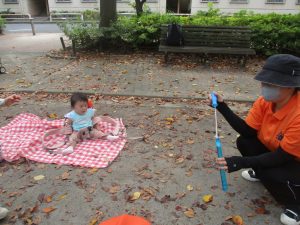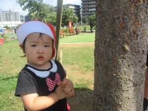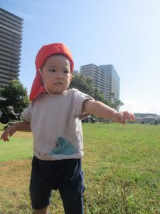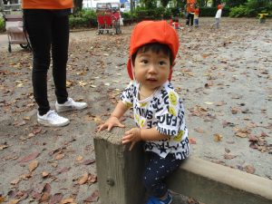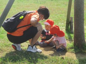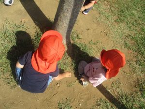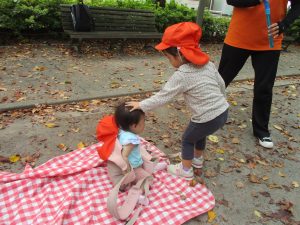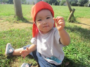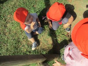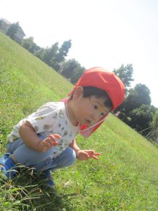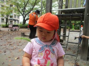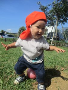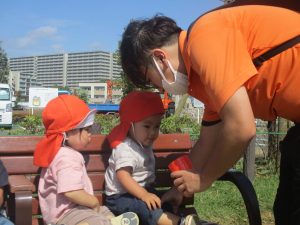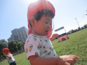1歳児クラスのお友達は、先生と一緒に防災公園でのびのびと過ごしておりました。