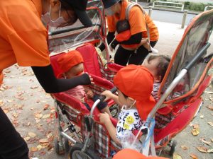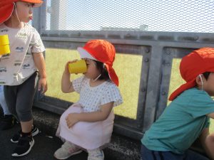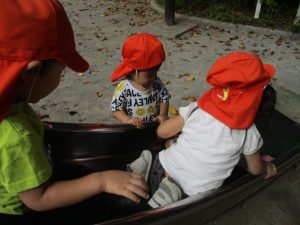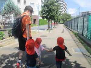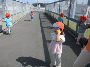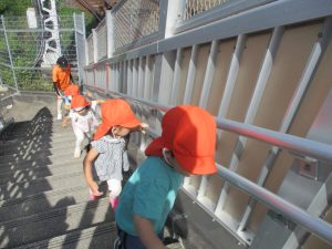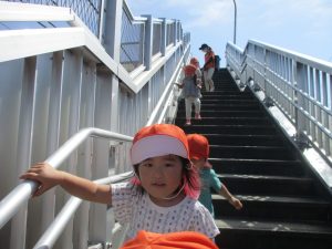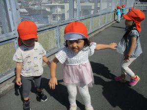 電車の大好きなお子様達で、「階段の登って電車みたいなー♡」とお話をしたり、「どんぐりころころ」や「アイスクリームのうた」など保育園で歌っている歌を歌ったりしながら賑やかに歩いておりました♪