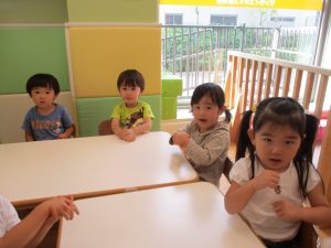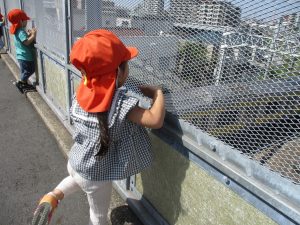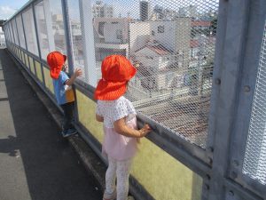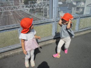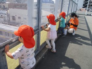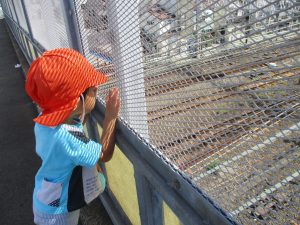2歳児クラスのお友達は、津田沼駅周辺まで電車を見に出かけました。