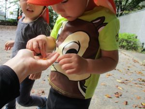 「パパとママとどんぐり拾ったよ♡」とそんな嬉しそうなお話も聞こえてきましたよ♪