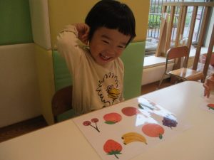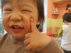 先生と一緒にぺたぺたとお顔を付けていきました♪