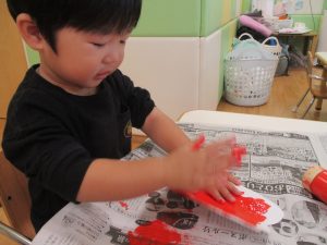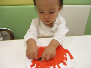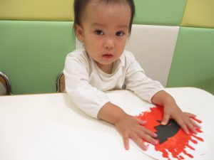 絵の具の感触に「ん?」と不思議そうな表情もとても可愛いですね♡