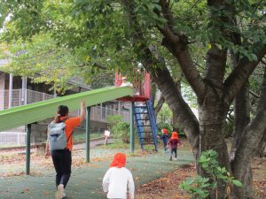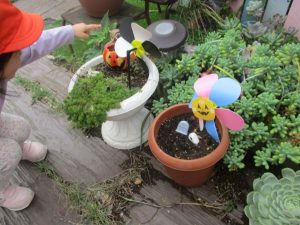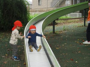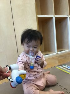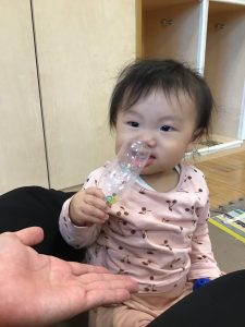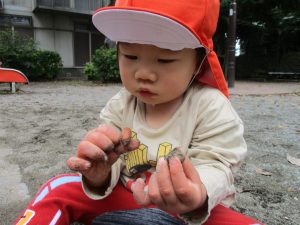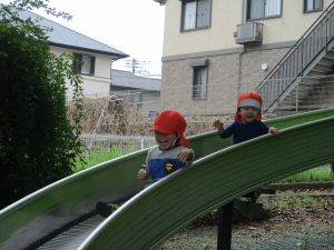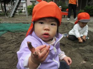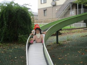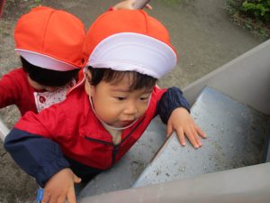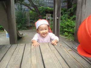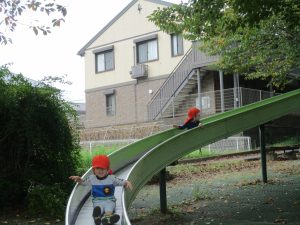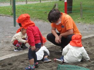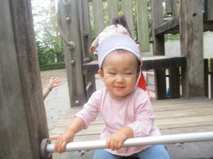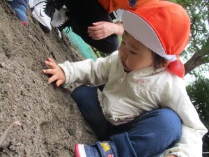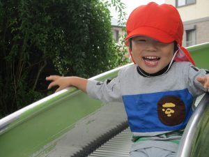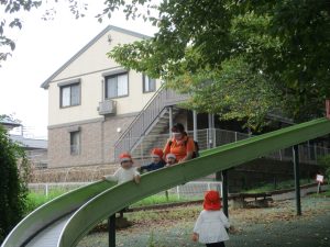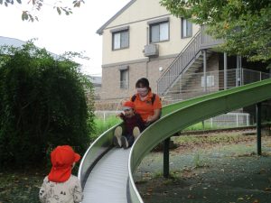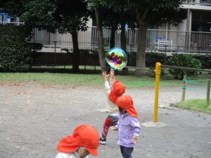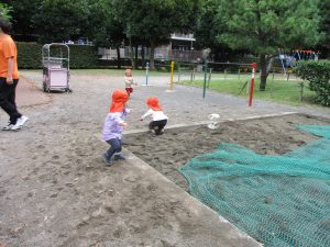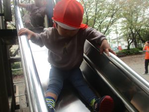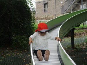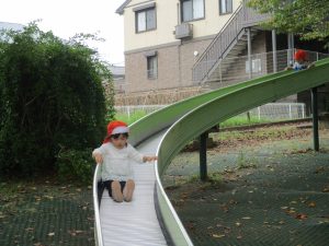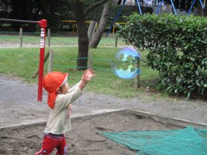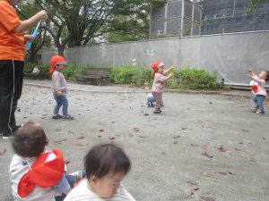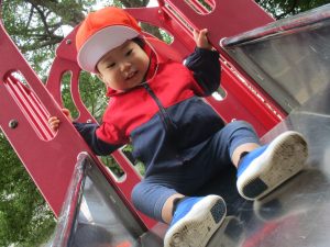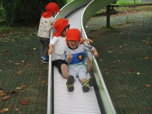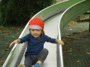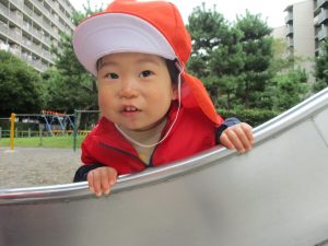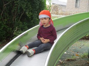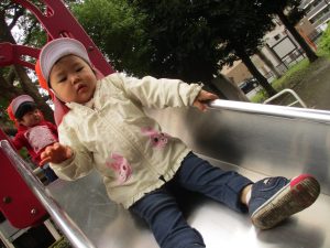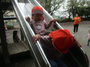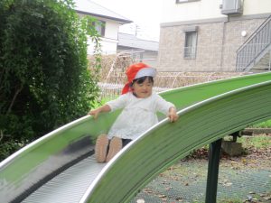 程よく湿った砂の感触をゆったりと楽しんだり、先生やお友達と一緒に滑り台を滑ったりシャボン玉追いかけて体を動かしたりして過ごしておりました。