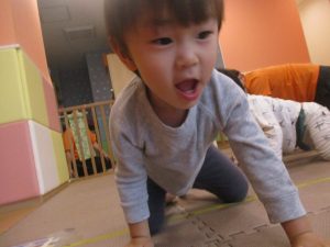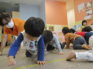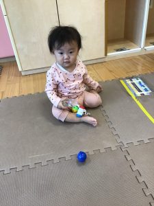 0歳児クラスのお子様達は、お部屋でマットや玩具を追いかけてのびのびと身体を動かしたり、10月の製作をしたりしてゆったりと過ごしておりました。