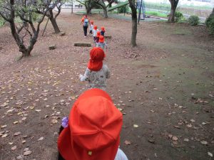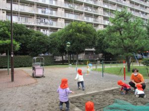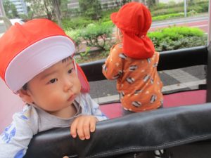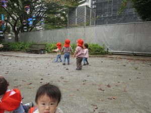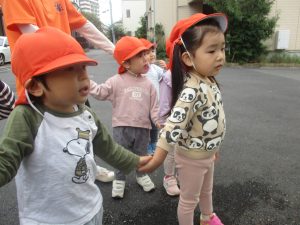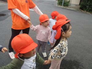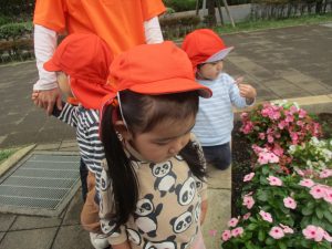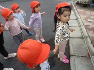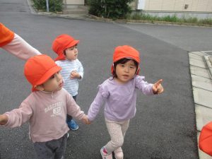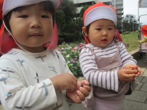 1歳児クラスのお友達は、1号公園まで遊びに出かけました。