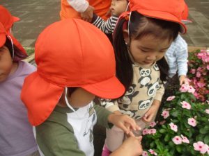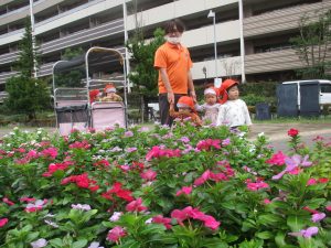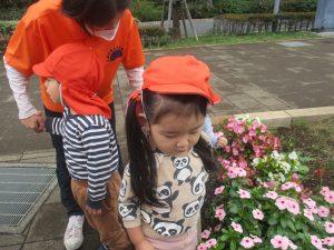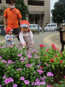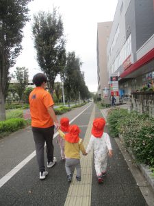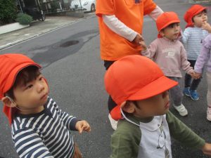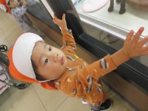 2歳児クラスのお友達は、「もうすぐハロウィンだね~♪」と胸を躍らせながら楽しみにしながら、街中のハロウィン探しに出かけました♪