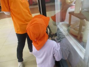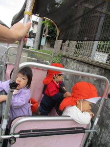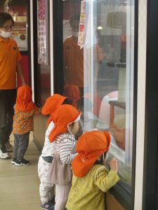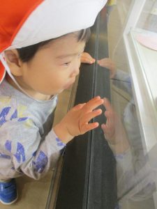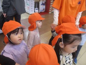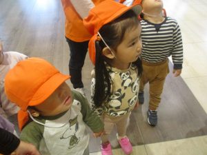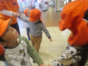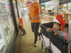 1歳児クラスのお友達は、近隣のモールへおでかけをしました。