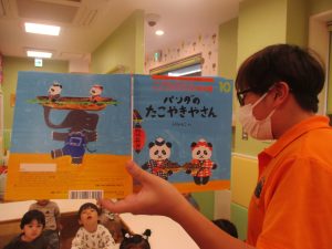 ぞうくんは小さなたこ焼きでは満腹にならず…一生懸命パンダのきょうだいが協力をして大きなたこやきをつくるお話です。