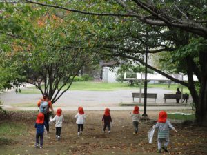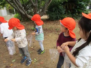 袋を握りしめては木の実探しを通して秋を存分に楽しんでおりました。