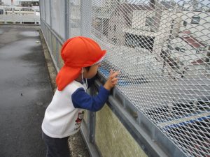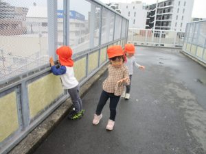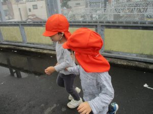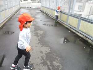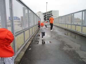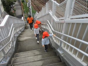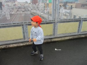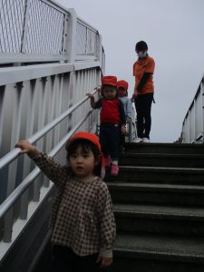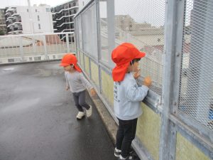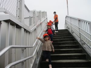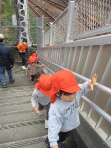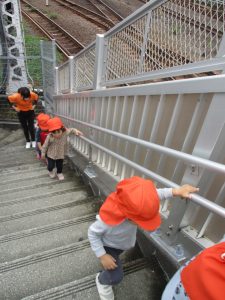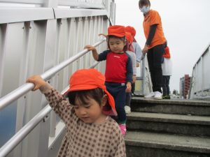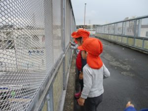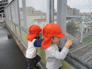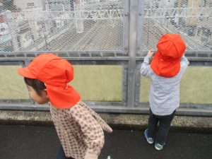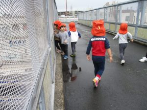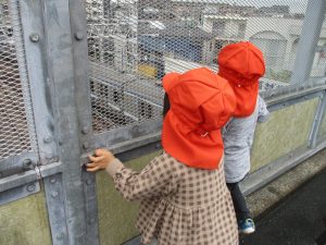 2歳児クラスの友達は、津田沼駅近くの陸橋まで電車を見に出かけました。